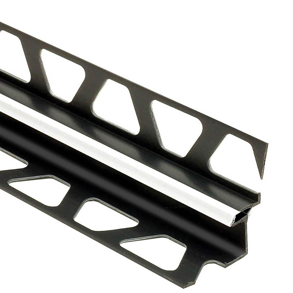 Schluter®-DILEX-EKE features trapezoid-perforated anchoring legs, made of recycled rigid PVC, which are secured in the mortar bond coat. The profile separates tile fields that meet at inside corners and accommodates movement via the 3/16" (5 mm)-wide soft chlorinated polyethylene (CPE) movement zone, which forms the visible surface and creates a discrete, uniform joint. DILEX-EKE prevents surface water penetration and features a tile pocket that hides cut tile edges. In addition, it prevents sound bridges, making it ideal for floor/wall transitions in sound-rated floors.