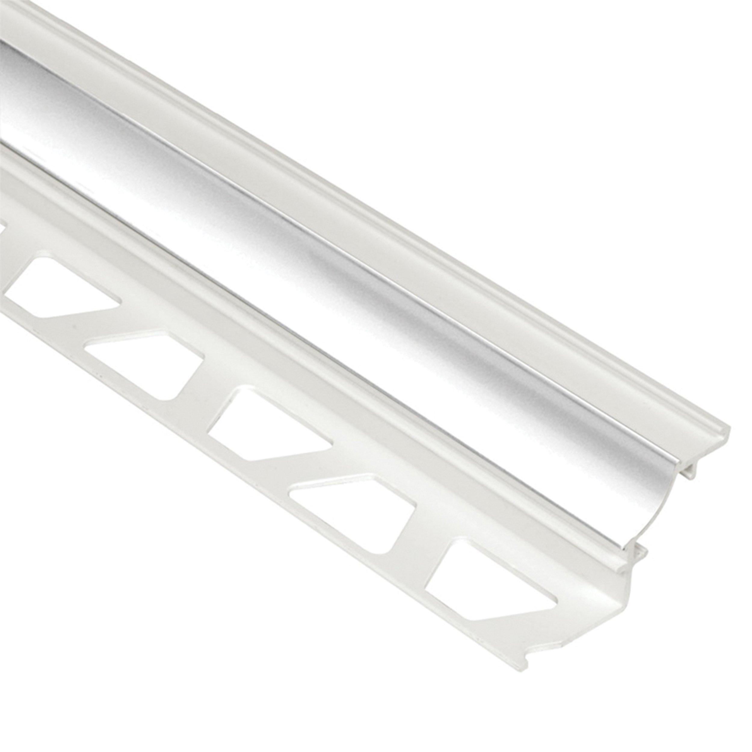 Schluter®-DILEX-PHK features a single trapezoid-perforated anchoring leg, which is secured in the mortar bond coat and a cove section that forms the visible surface. The profile's 3/8" (10 mm) radius makes DILEX-PHK an attractive option for countertop/backsplash transitions, as it prevents the accumulation of dirt and makes cleaning simple. The profile separates tile fields that meet at inside corners where limited movement is expected. DILEX-PHK prevents surface water penetration and meets the maintenance and hygienic requirements of commercial kitchens, bathrooms, and food-processing plants, or any tiled environment where a sanitary cove base is desired. DILEX-PHK is made of rigid PVC with a pre-colored, rigid PVC cove section. Accessories for DILEX-PHK include: inside and outside corners, connectors, and end caps.