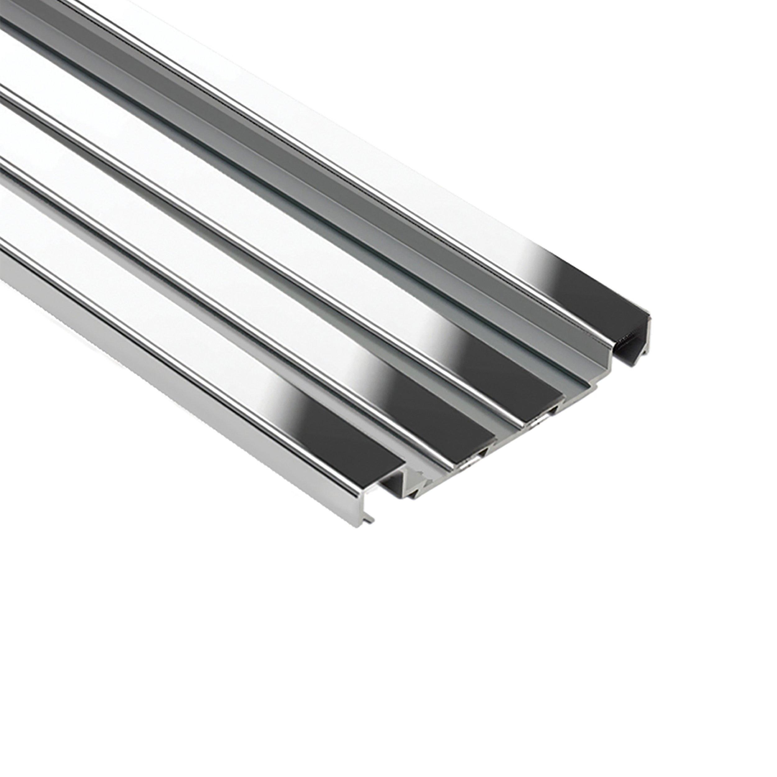 Schluter Quadec-Fs Deco 5/16in. Aluminum Polish Chrome is a finishing and edge-protection profile for the outside corners of tiled surfaces on walls. The vertical wall section of the profile provides a decorative finish and protects adjacent tiles. Other applications include transitions for dado coverings such as carpet, natural stone, or cold-cured resin coatings.