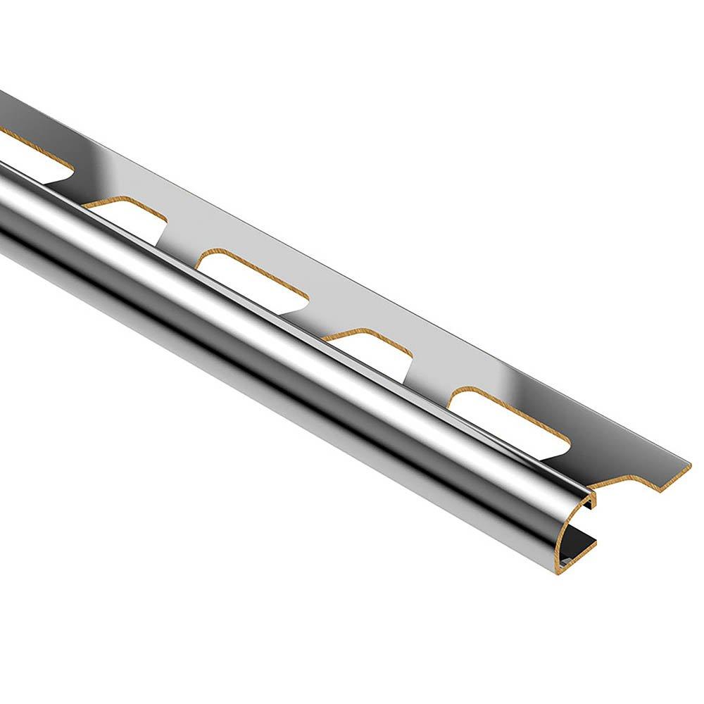 Schluter Rondec Bullnose Trim 5/16in. Chrome-Plated Brass is a finishing and edge-protection profile for the outside corners of tiled surfaces on walls. The vertical wall section of the profile provides a decorative finish and protects adjacent tiles. Other applications include transitions for dado coverings such as carpet, natural stone, or cold-cured resin coatings.