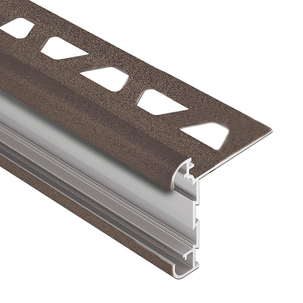 Schluter Rondec-Ct Counter Trim 1/2in. Aluminum Bronze is a finishing and edge-protection profile for the outside corners of tiled surfaces on walls. The vertical wall section of the profile provides a decorative finish and protects adjacent tiles. Other applications include transitions for dado coverings such as carpet, natural stone, or cold-cured resin coatings.