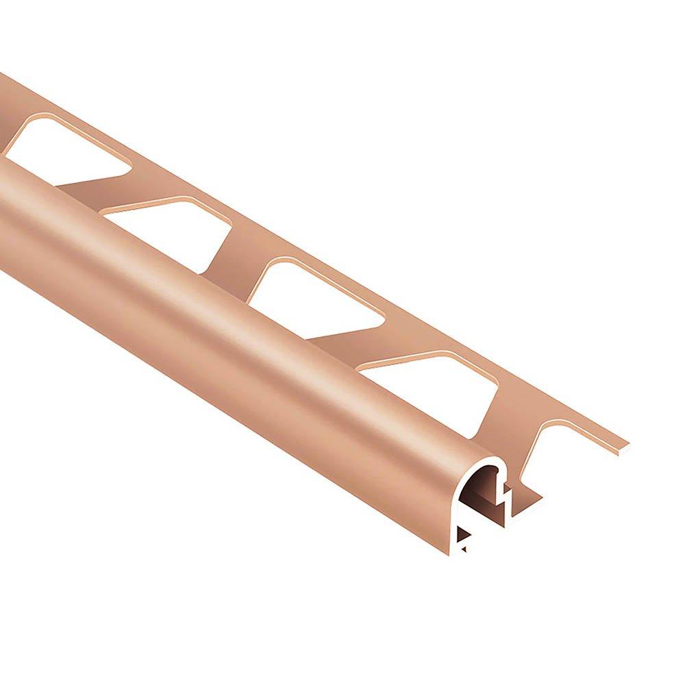 Wall OnlySchluter Rondec-Db Deco Trim 17/32in. Aluminum Satin Copper is a finishing and edge-protection profile for the outside corners of tiled surfaces on walls. The vertical wall section of the profile provides a decorative finish and protects adjacent tiles. Other applications include transitions for dado coverings such as carpet, natural stone, or cold-cured resin coatings.