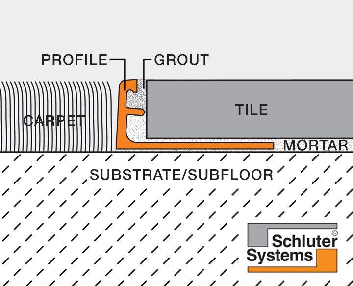 Schluter®-SCHIENE is designed to provide edging for tile coverings. Typical applications include edge protection where tile is bordered by carpet, at expansion joints, or as a decorative edging for stairs.