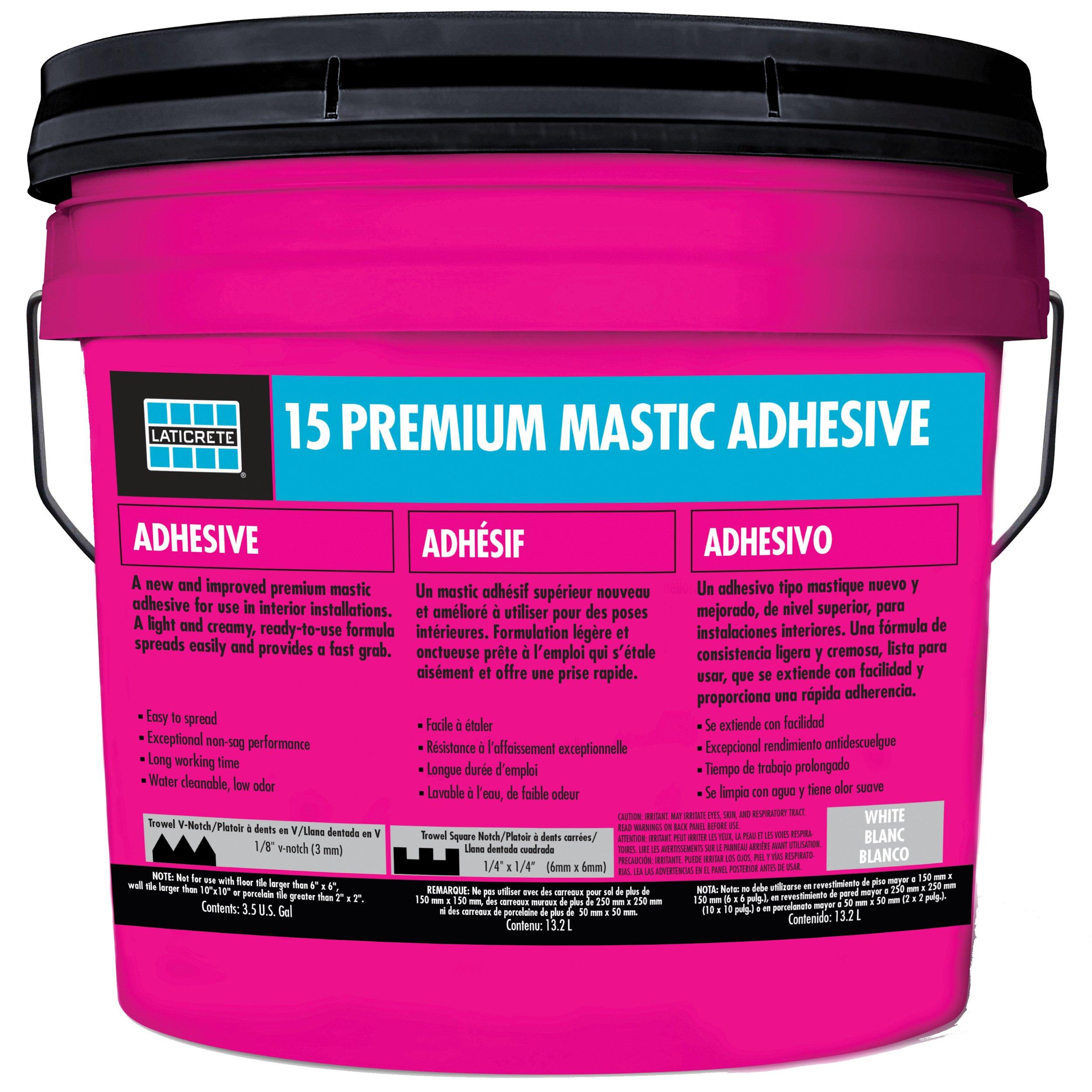 Laticrete 15 Premium Mastic Adhesive is a pre-mixed, water-resistant adhesive designed for interior installations of ceramic tile and natural stone. Smooth and creamy, it spreads easily while delivering strong adhesion for both floors and walls.