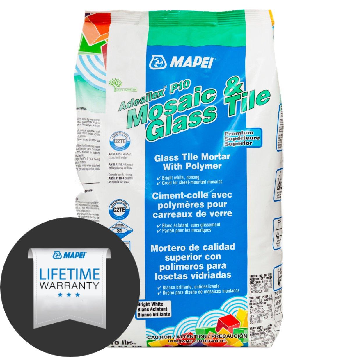Mapei Adesilex-P10 Premium Glass Tile Mortar is a premium-grade, bright white thin-set mortar designed specifically for glass tile, glass mosaics, and marble mosaics. Its nonsag formulation ensures precise placement, making it ideal for sheet-mounted mosaics and light translucent natural stone. This versatile mortar delivers exceptional color consistency and a brilliant white finish for stunning tile installations.