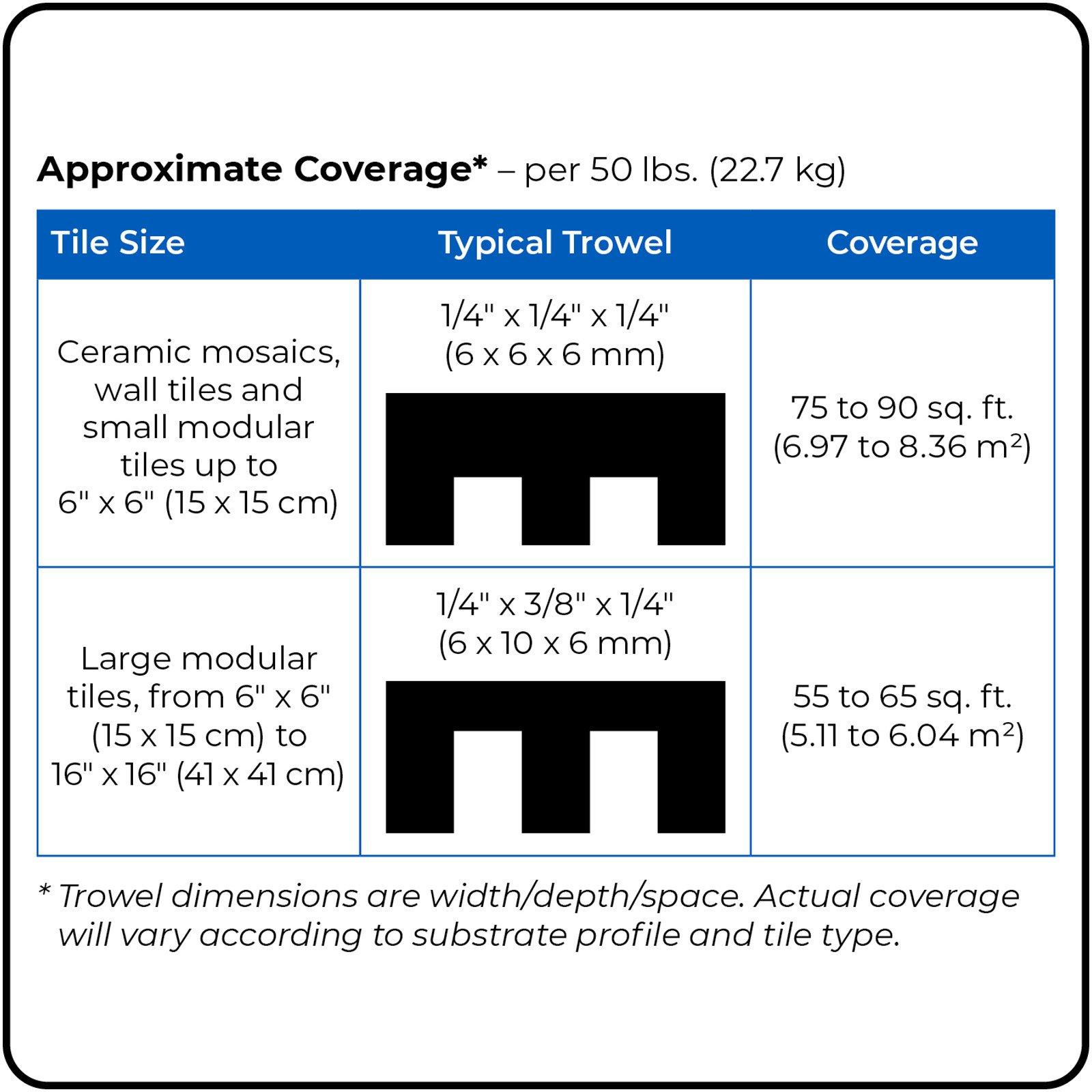 • Provides strong adhesion for stone, ceramic, porcelain, and quarry tile