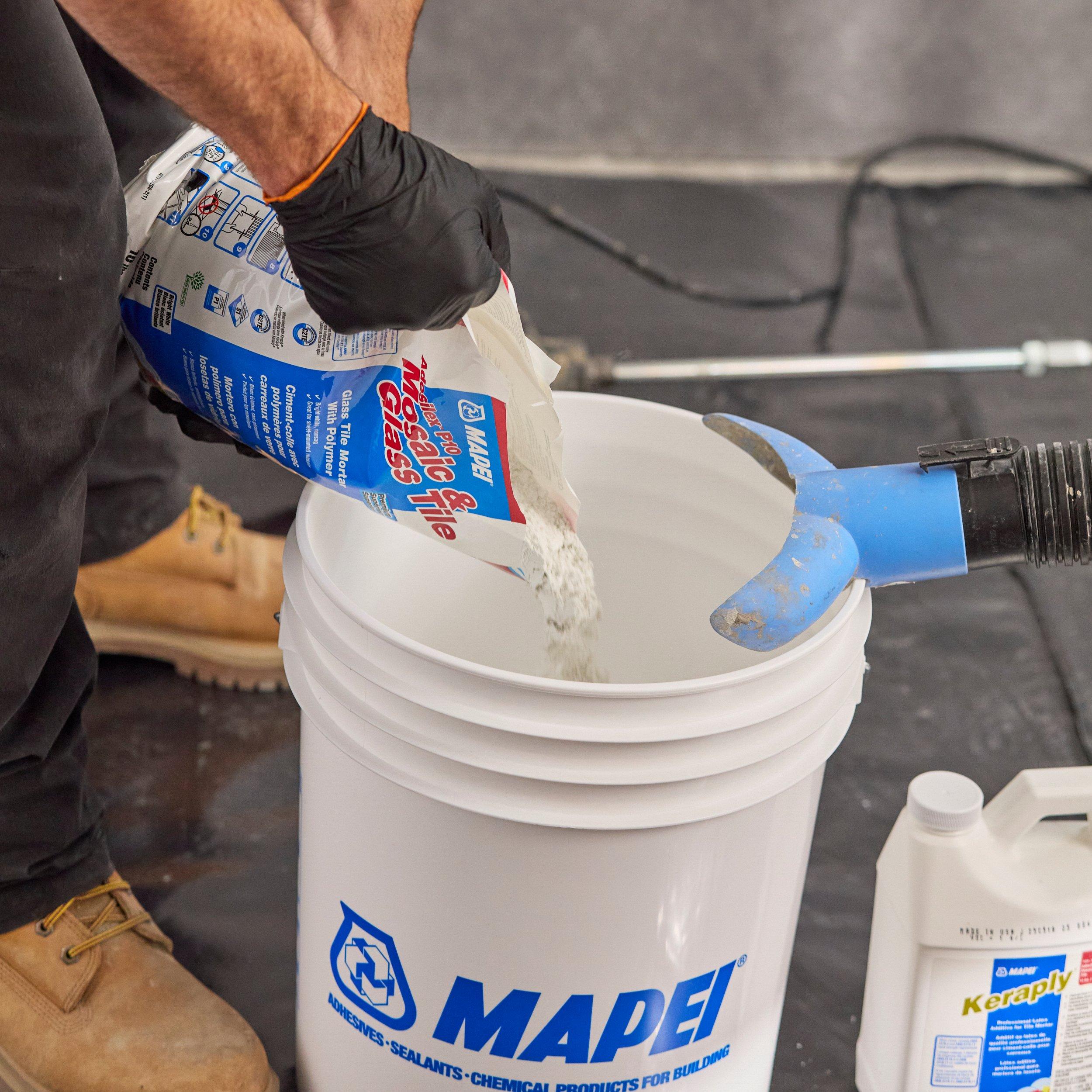 When mixed with dry-set mortar instead of water, Mapei Keraply Latex Additive for Tile Mortar creates a flexible, high-performance system suitable for a wide range of tile and stone types over additional substrates. It is perfect for interior and exterior applications, including wet and dry areas, and ensures reliable adhesion even in areas subject to temperature extremes and moisture.