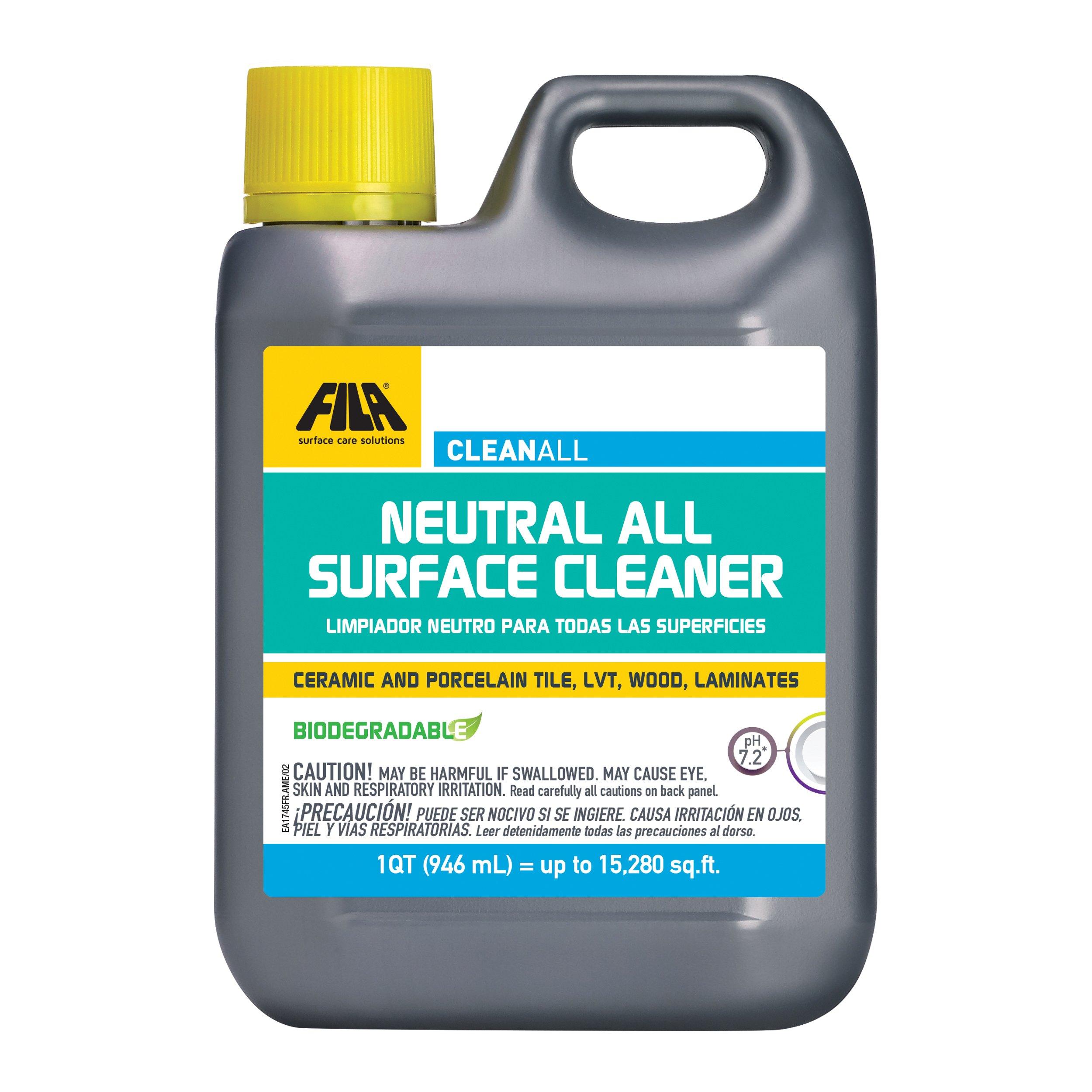 NONEFila Cleanall Cleaner is a neutral, professional, highly concentrated cleaner for tile, LVT, wood and laminates. The gentle, pleasantly scented formula safely cleans surfaces, leaving them streak free. CLEANALL is ideal for everyday maintenance.•Neutral, biodegradable formula.•Gently cleans all wall and floor coverings in ceramic and porcelain tile, LVT, wood and laminates.•Safe for delicate surfaces.•Highly concentrated – can be diluted according to use.•When diluted 1:200, it does not leave a residue, does not require rinsing and can be used in floor cleaning machines.•Pleasantly scented.