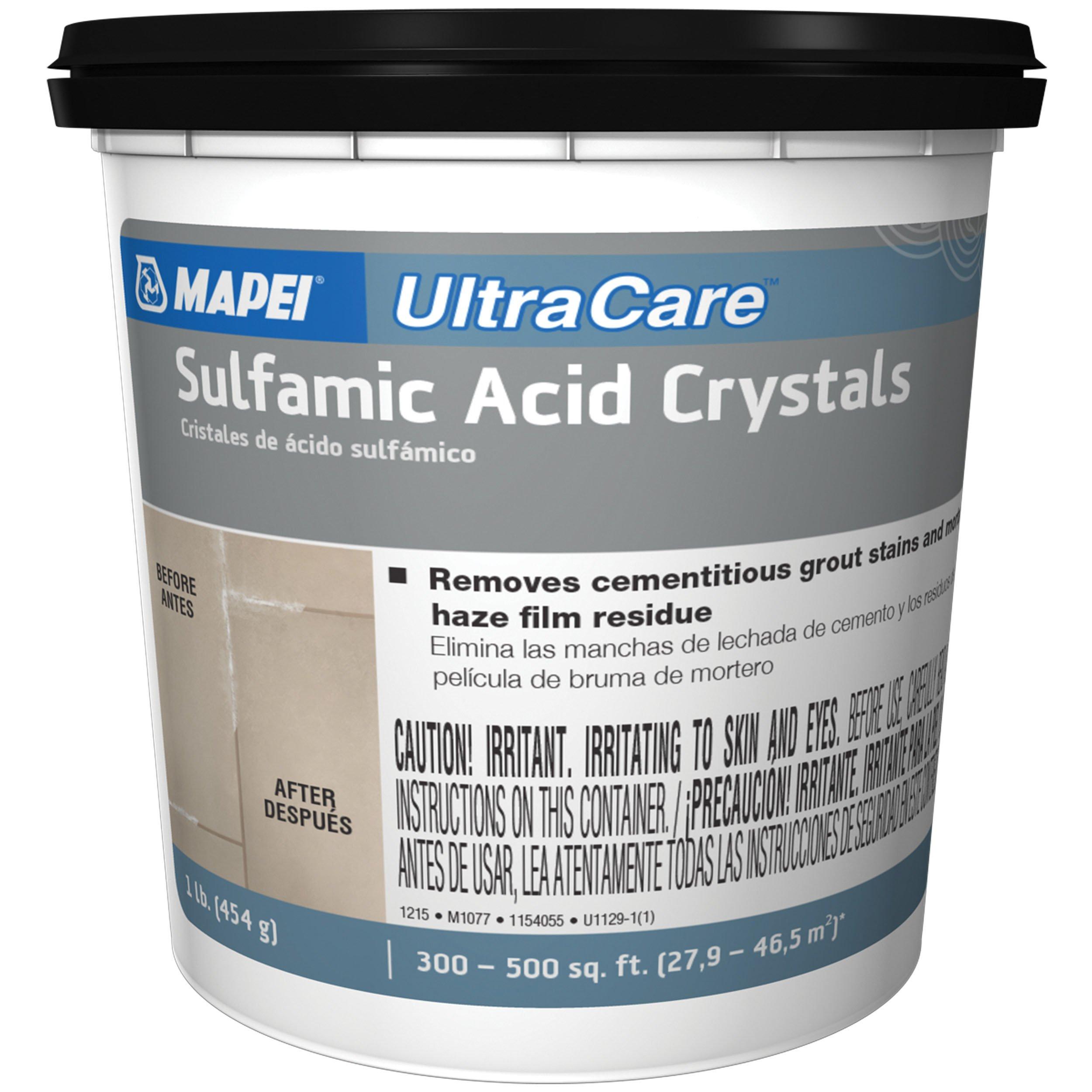 1 Year LimitedMapei Ultracare Sulfamic Acid Crystals is a granular powder cleaner that dissolves in water to create a powerful, acid-resistant solution for tile and natural stone. It effectively removes cured cement grout haze, mortar residue, rust stains, and mineral deposits such as efflorescence, making it ideal for post-installation cleanup and ongoing maintenance.