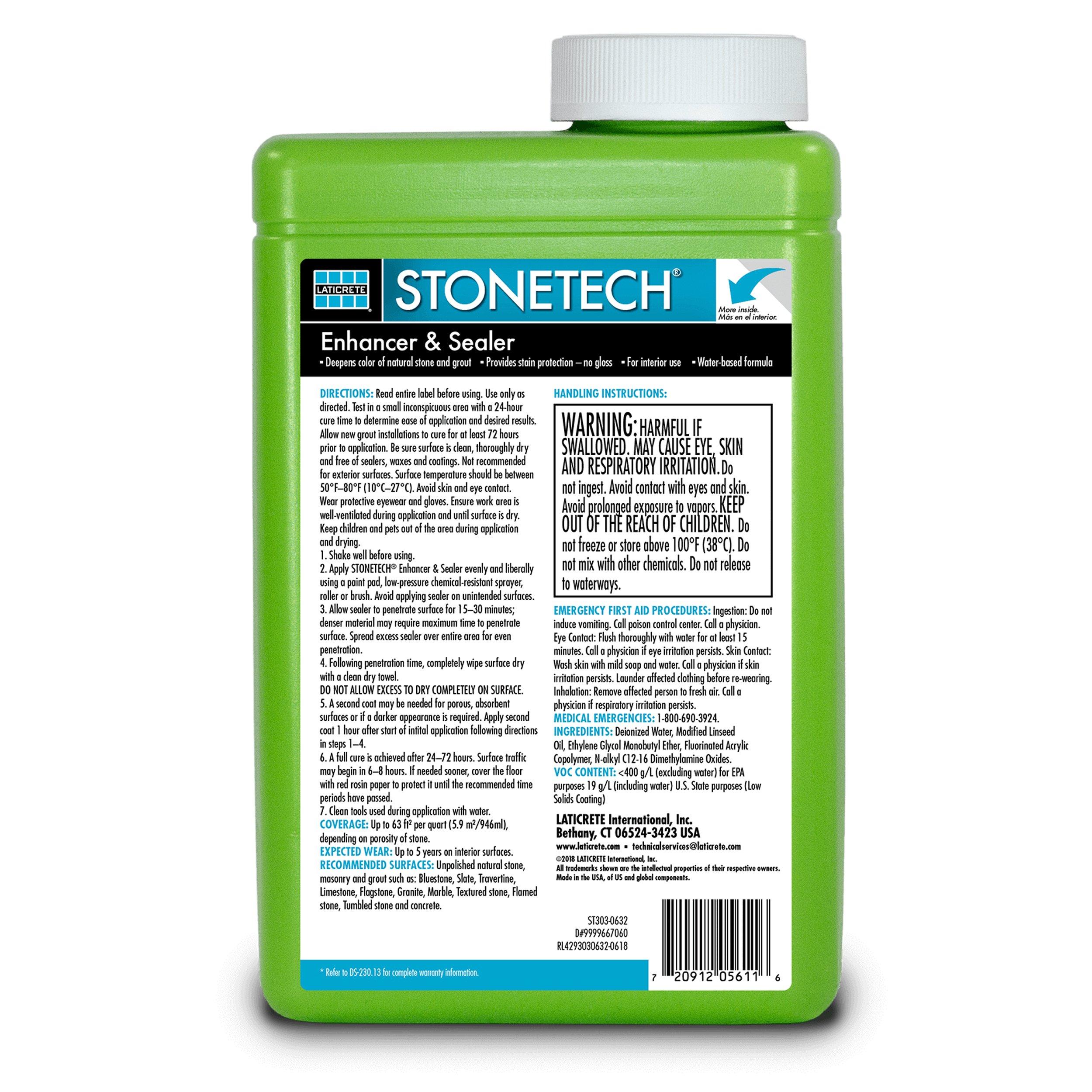 STONETECH® Enhancer & Sealer is water-based, color enhancing sealer that seals and enhances natural stone, masonry and grout to a deep rich color.
