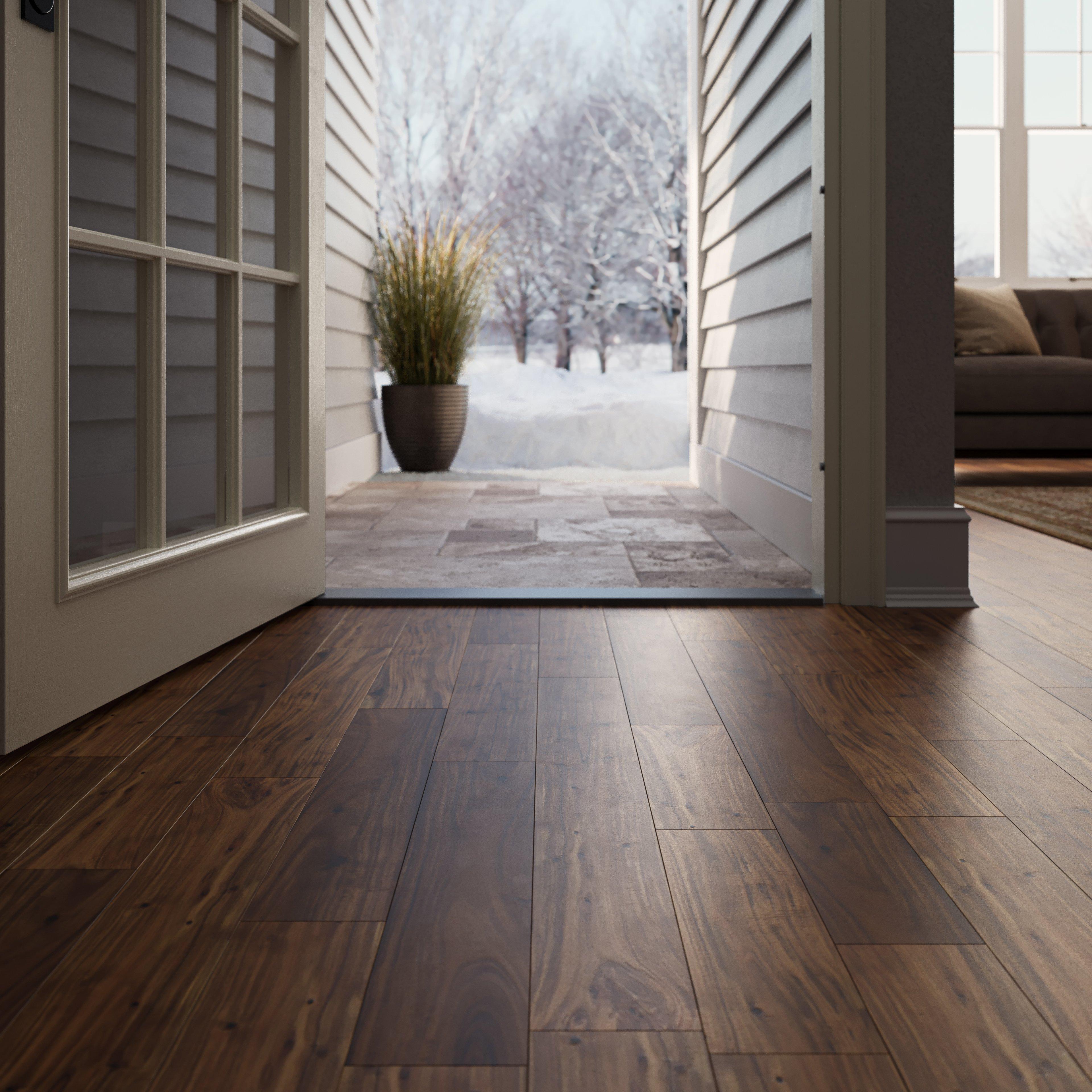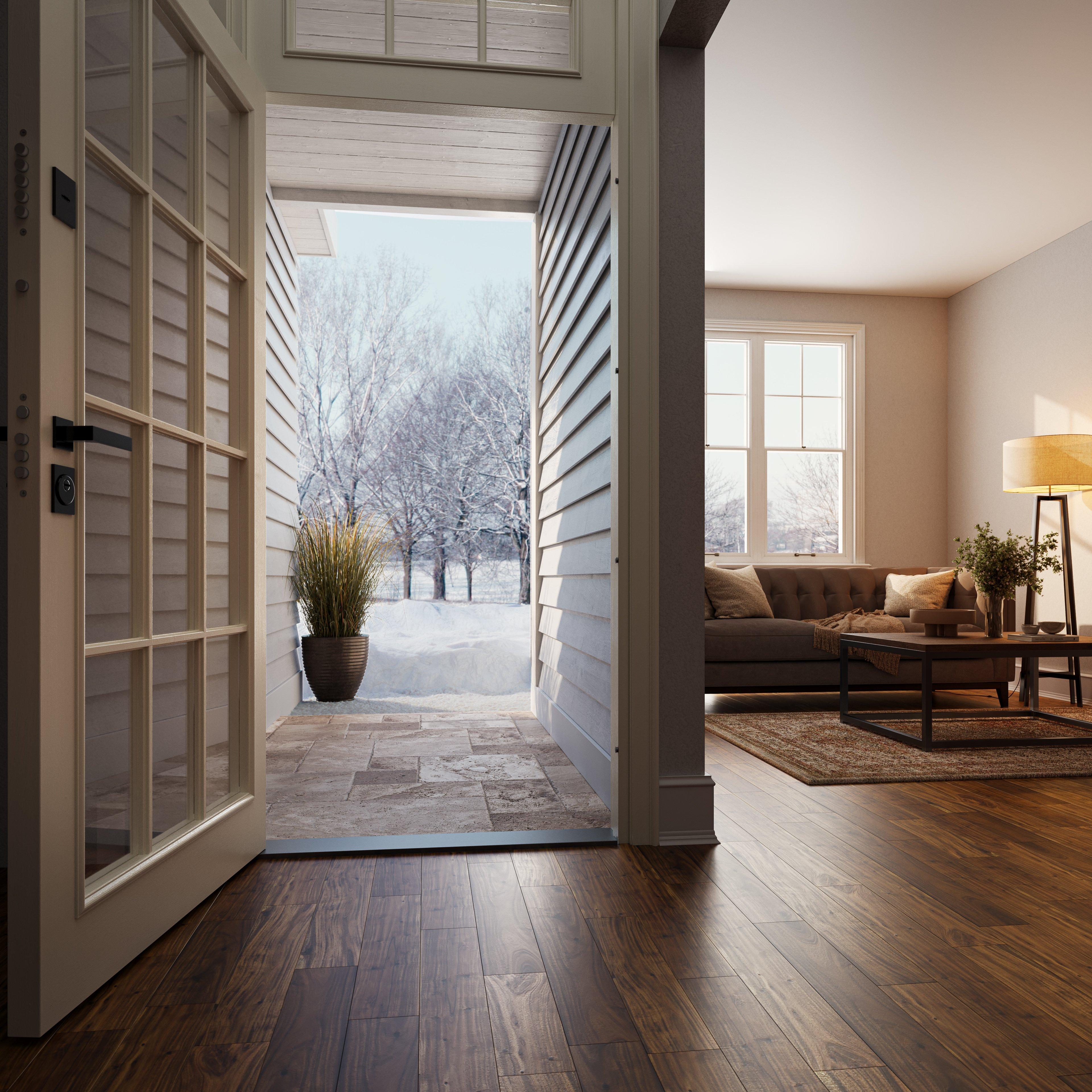 Natural stone's ageless beauty is highlighted with brushed finish tiles, giving the surface of the tile a textured look.