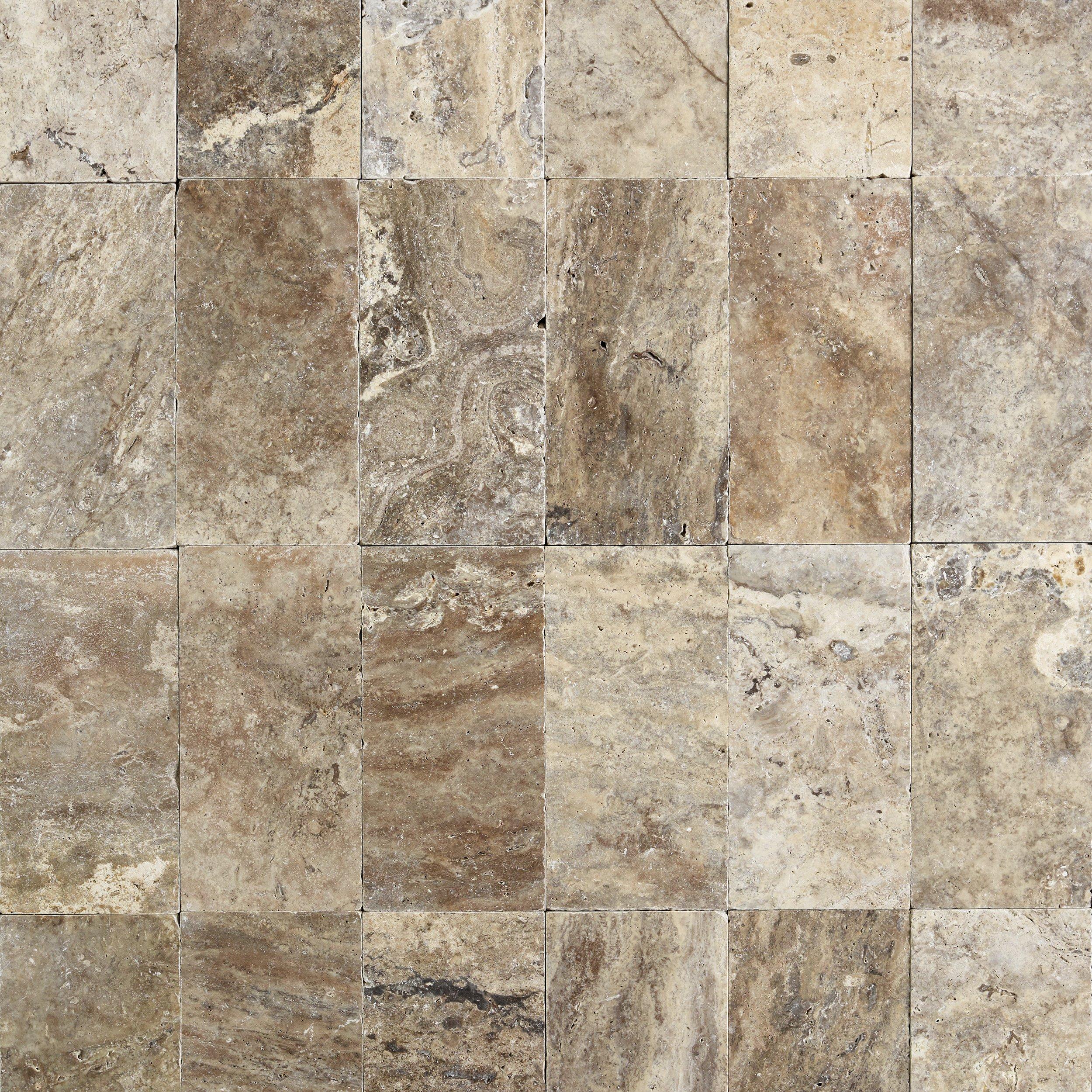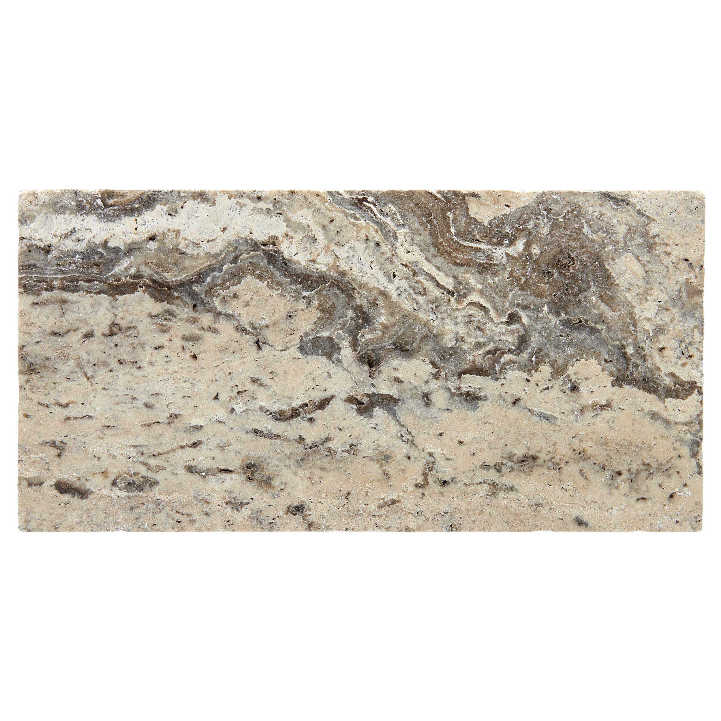 This Silver Tumbled Travertine 3cm. Paver is 6 x 12 and is gray.