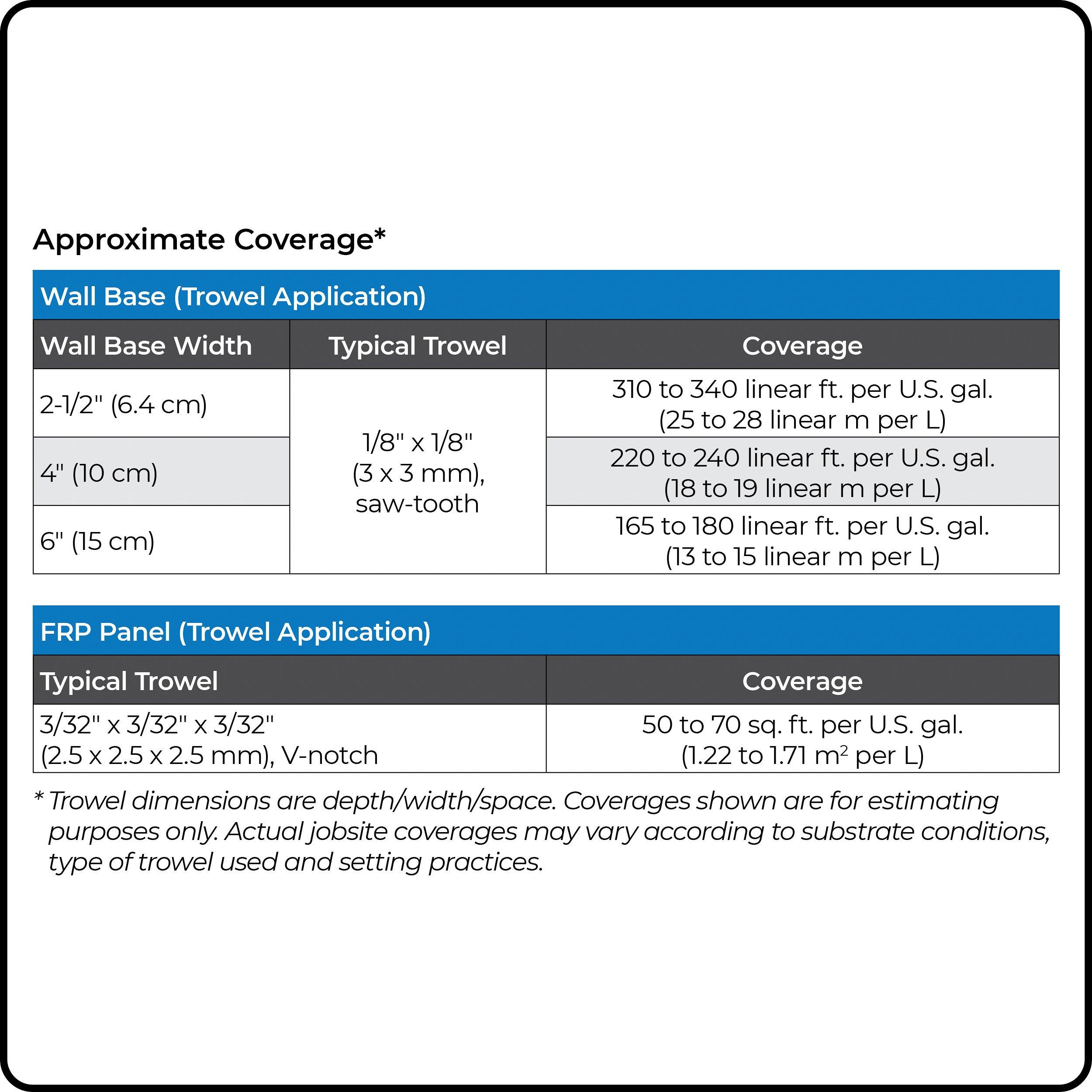 This adhesive is ideal for high-traffic areas and demanding installations, providing fast, early grab and long-lasting durability. Mapei ECO 575 Wall Base Adhesive Pail is also versatile enough for use with FRP panels and various types of wall carpet, making it a go-to solution for professional installers.