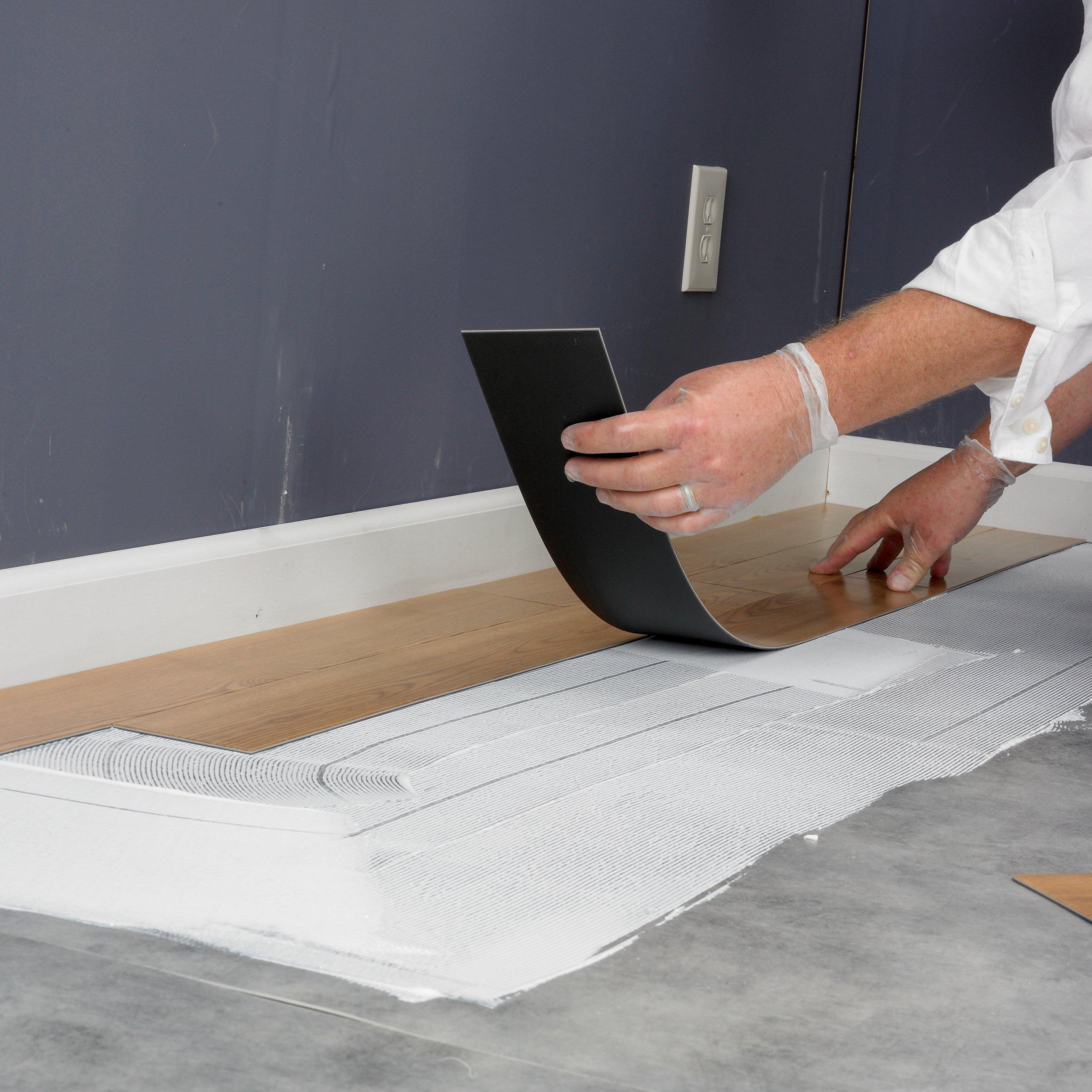 Perfect for installing sheet vinyl, luxury vinyl tile (LVT), and vinyl plank using a pressure-sensitive adhesive system.