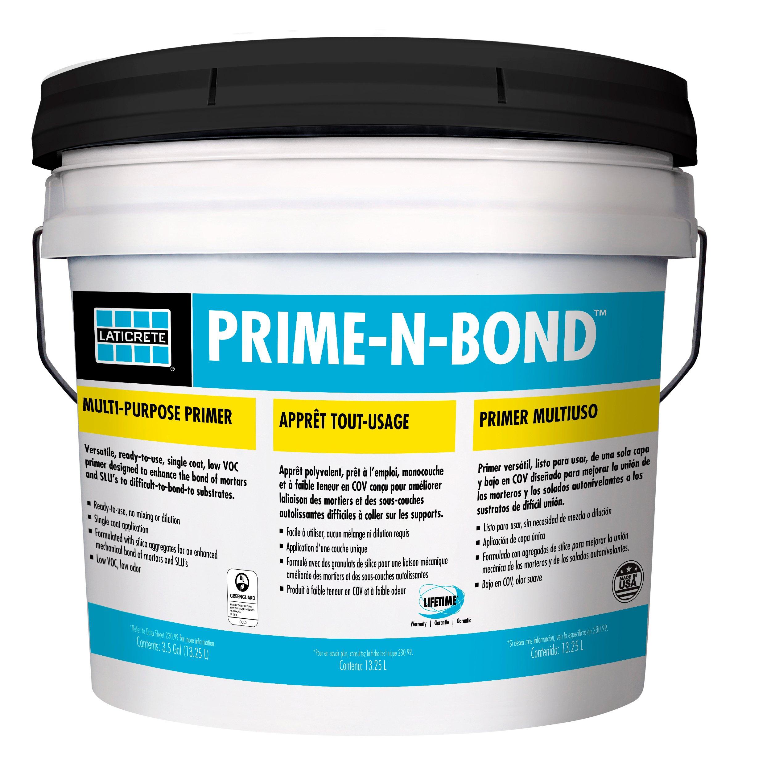 Lifetime SystemLaticrete Prime-N-Bond 3.5gal. is a ready-to-use, low-VOC primer designed to enhance the adhesion of mortars to a variety of smooth and non-absorptive substrates. Its single-coat application simplifies the installation process, making it ideal for both residential and light commercial projects.
